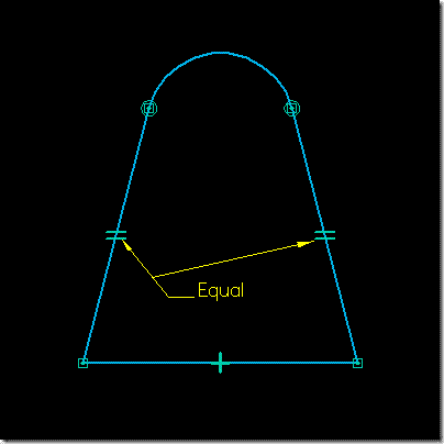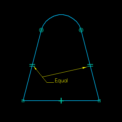 - The Equal constraint displays as a set of equal signs display on the curves that are equal.