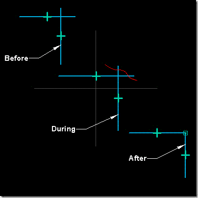3. Drag the cursor across the curve(s). A drag path displays.